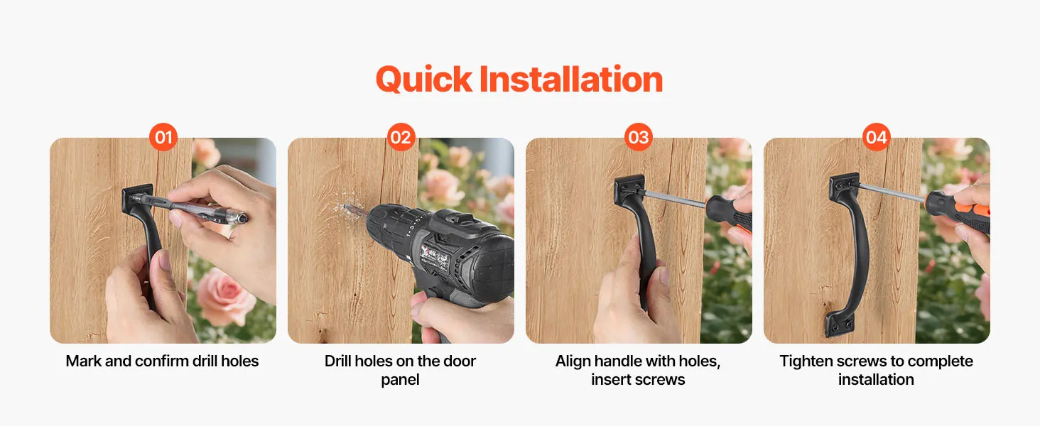 The barn door handle is ideal for fence gates, barn doors, tool sheds, garden gates, and courtyard doors, adapting effortlessly to various door types.