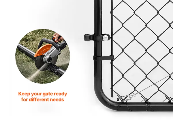 High-Quality Materials: The frame of the chain link fence gate features galvanized steel with a plastic coating, ensuring exceptional durability and rust resistance in all weather conditions.