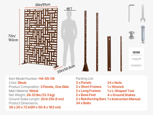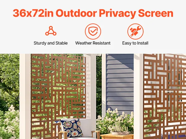 This 36x72 in metal privacy screen is corrosion-resistant and durable, ideal for long-term outdoor use. With wind resistance, it's ideal for gardens, patios, and courtyards, offering both privacy and style. It can also be used indoors to divide spaces, providing versatile, elegant separation.