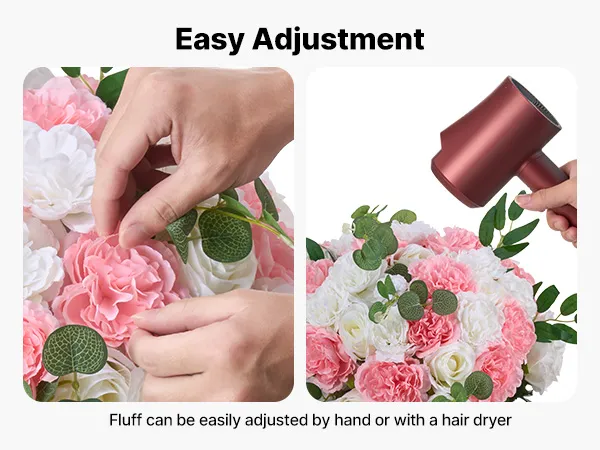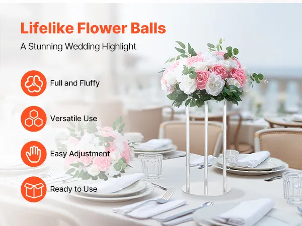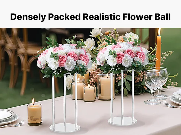 Our flower balls for centerpieces feature high-density blooms for lifelike fullness in natural hues. No assembly needed, they are ready to use. You can maintain its shape by hand-fluffing or quick blow-drying. It elevates weddings, parties, tabletops, and home décor with elegant sophistication.