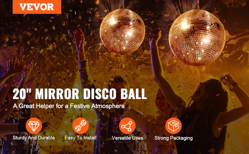 VEVOR Mirror Disco Ball, Large 20 Inch Party Mirror Ball with Hanging Ring, Lightning Disco Ball Party Decorations, Ideal for DJ Club, Stage, Wedding, Birthday, Christmas, New Years Celebration
