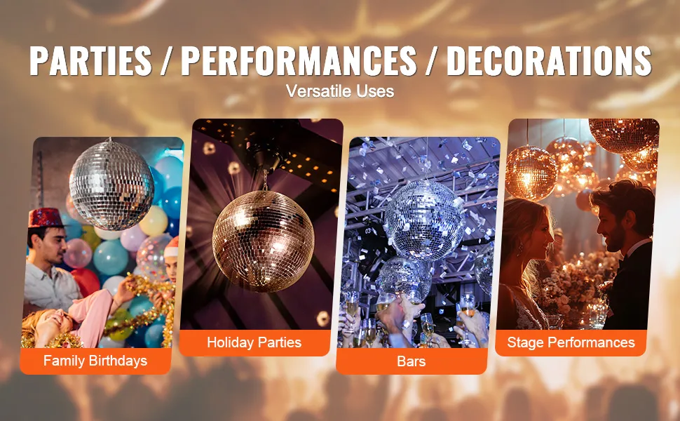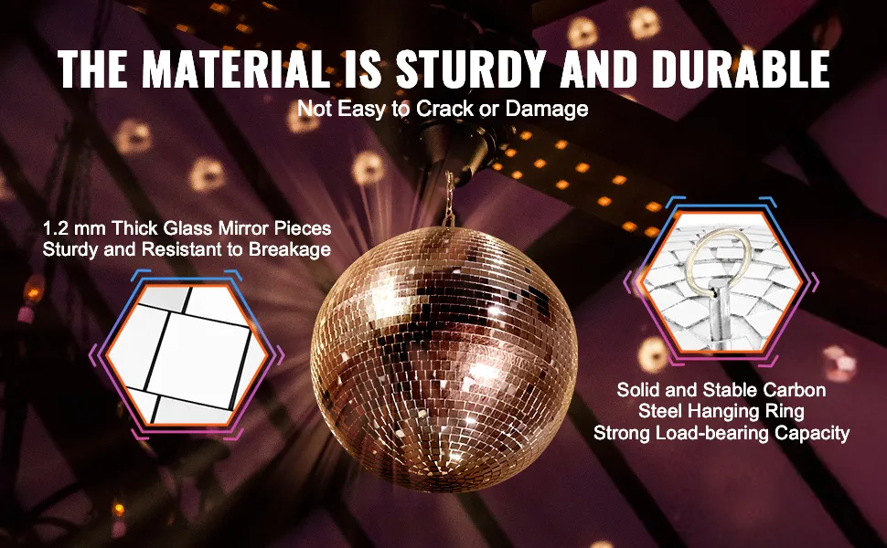 With thick glass mirrors and a strong carbon steel hanging ring, this disco ball is tough, durable, and ready to shine for a long time.