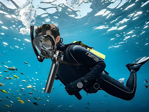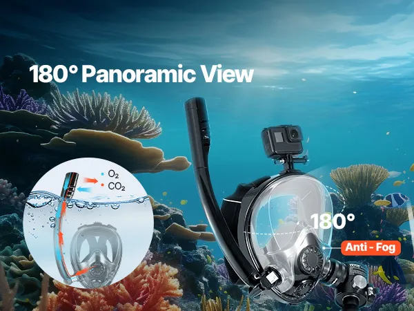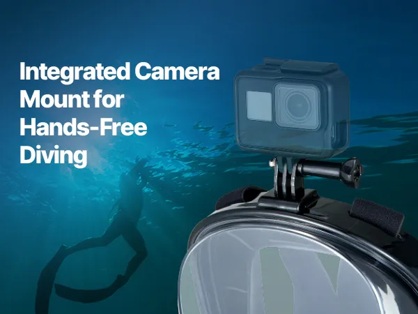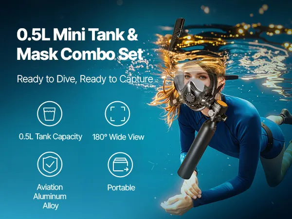 180° Full View Mask: Dive with clarity! The anti-fog, leak-proof mask of our lung tank gives you a wide, unobstructed view while diving. Plus, the sports camera mount on top lets you capture all your underwater moments without needing to hold the camera. Dive freely!