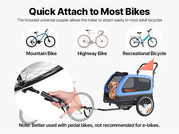 A: It's better to use it with a pedal bicycle. If using with an e-bike, keep your speed under 8 MPH (13 km/h), and reduce to under 3 MPH (5 km/h) when turning to ensure your pet's security.