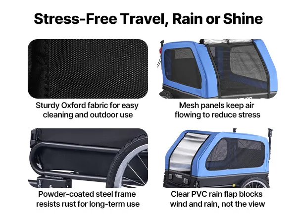 A: Yes, the trailer includes an interior restraint leash, mesh ventilation for comfort, and a smooth-rolling design. However, for anxious pets, we recommend short training sessions before your first ride.