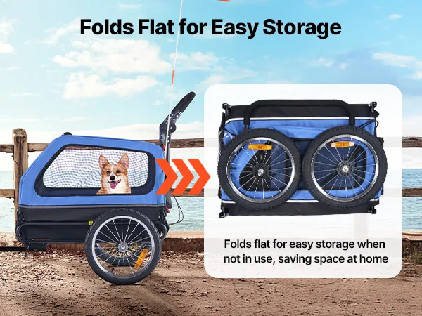 This foldable pet cart bicycle carrier is great for bringing medium to large dogs along on your rides. With a sturdy steel frame, breathable mesh panels, and a built-in leash, it keeps your pet secure and comfortable on every adventure.