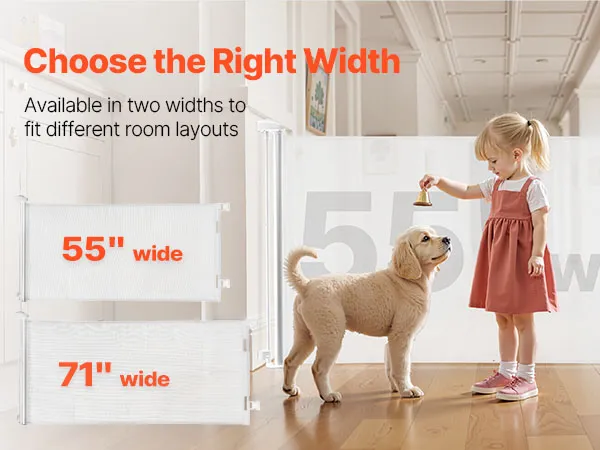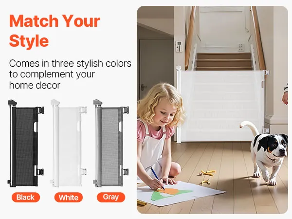 Retractable & Clutter-Free: When retracted, the retractable pet gate disappears into its housing, keeping your space tidy and walkways fully open. Designed without a bottom threshold to reduce tripping and ensure secure daily use for kids and pets
