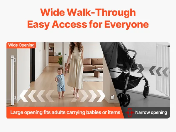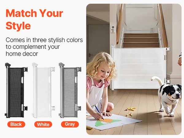 Retractable & Clutter-Free: When retracted, the retractable pet gate disappears into its housing, keeping your space tidy and walkways fully open. Designed without a bottom threshold to reduce tripping and ensure secure daily use for kids and pets