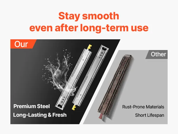 With a 250 lbs load-bearing capacity, this drawer slides is made of high quality steel and it is rust and corrosion-resistant and built to last, meeting all your load-bearing needs.