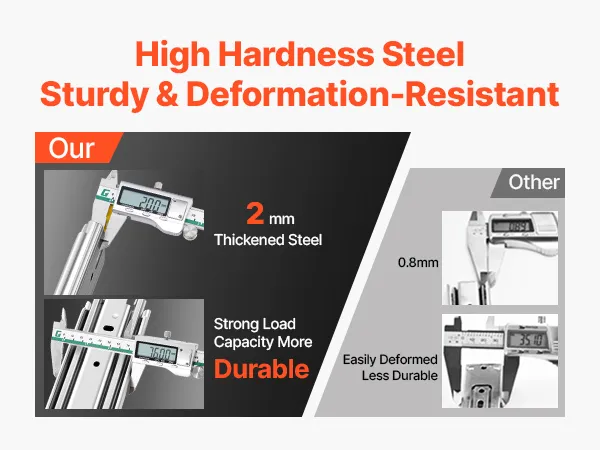 Thanks to the lock design, you just simply press to lock the slide rail. This design avoid items from accidentally falling and ensuring secure operation.