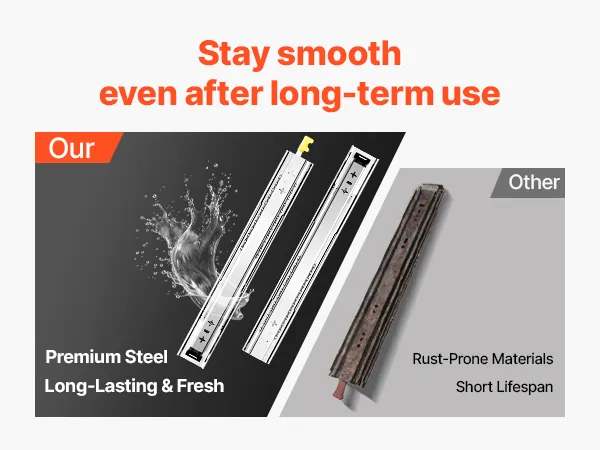 With a 250 lbs load-bearing capacity, this drawer slides is made of high quality steel and it is rust and corrosion-resistant and built to last, meeting all your load-bearing needs.