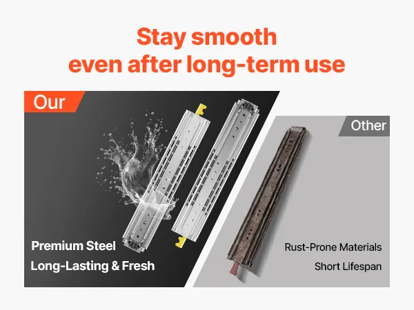 With a 500 lbs load-bearing capacity, this drawer slides is made of high quality steel and it is rust and corrosion-resistant and built to last, meeting all your load-bearing needs.