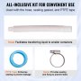 VEVOR drum pump specifications and accessories: hose, clamp, ptfe tape, 50.4x8.7x9.8 in.