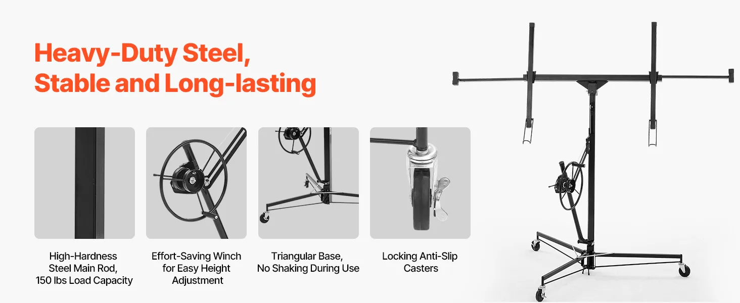 • 150 lbs Weight Capacity: This drywall lift is made from heavy-duty carbon steel to ensure long-lasting durability. With a maximum weight capacity of 150 lbs / 68 kg, this tool is the ideal choice for both home and commercial use