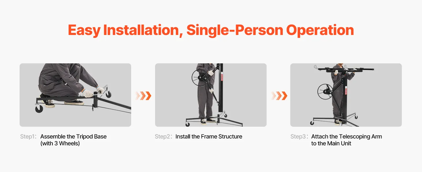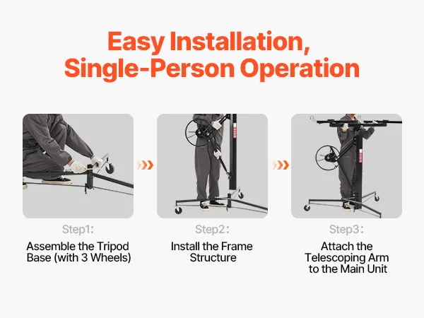 • Easy Assembly and Operation: This drywall jack can be easily assembled and disassembled without tools. It’s equipped with a winch to save manpower and is ideal for DIY and residential use, allowing one person to install drywall or wood panels