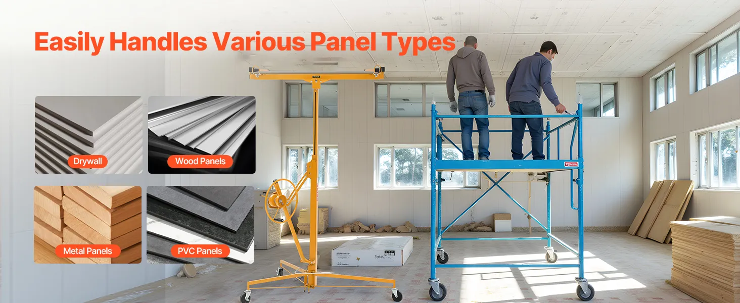 This lift easily handles various materials, including drywall, wood panels, metal sheets, PVC boards, and more, meeting your diverse renovation needs.
