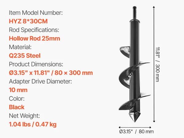 • Versatile Size: Measuring 80 mm (3.15 in) in diameter and 290mm (11.42 in) in length, drill augers for digging holes are ideal for planting bulbs and flowers of various sizes to suit your diverse gardening needs.