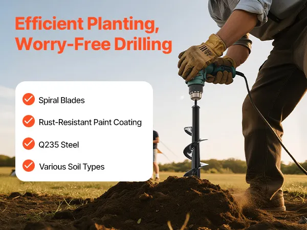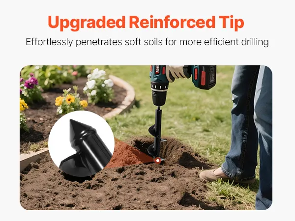 Q: What type of drill is compatible with this auger bit?A: Most garden auger bits will fit into any 3/8" hex drive drill or 20mm ID drive drill, making them compatible with standard cordless or fuel drills. Make sure your drill bit has enough torque for efficient digging.Q: What soil types can this auger drill bit handle?A: This auger works well in loose to moderately compacted soil, including garden beds, clay, and sandy soil. However, for very rocky or hard-packed soil, a more powerful drill and extra effort may be needed.Q: What else can I use this auger drill bit for besides planting?A: In addition to digging holes for bulbs, flowers, and vegetables, you can also drill holes for small fence posts, tents, or outdoor decorations.