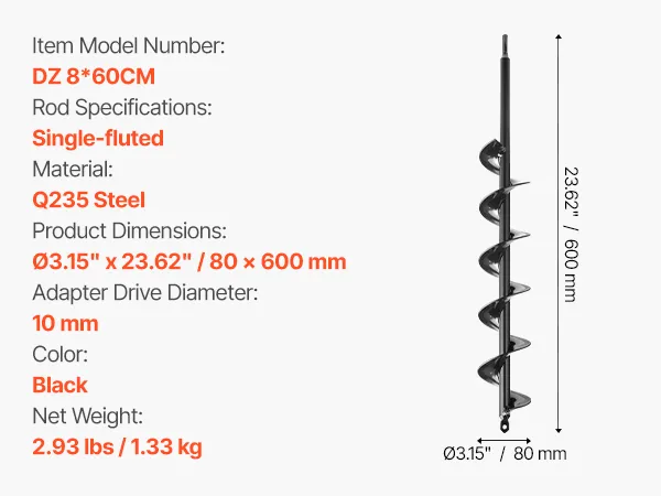 VEVOR Auger Drill Bit for Planting, Ø3.15" x 23.62" Spiral Drill Bit, for 3/8'' Hex Drive Drills, Heavy Duty Bulb Planter Tool, Hole Drilling Attachments for Garden Post Hole Digger Fence Digging VEVOR Auger Drill Bit for Planting, Ø3.15" x 23.62" Spiral Drill Bit, for 3/8'' Hex Drive Drills, Heavy Duty Bulb Planter Tool, Hole Drilling Attachments for Garden Post Hole Digger Fence Digging