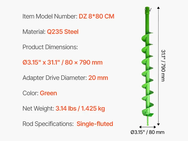 VEVOR Auger Drill Bit for Planting, Ø3.15" x 31.1" Spiral Drill Bit, Compatible with 0.78" ID Drive Drills, Heavy Duty Bulb Planter Tool, Post Hole Drilling Attachments for Garden Digger Fence VEVOR Auger Drill Bit for Planting, Ø3.15" x 31.1" Spiral Drill Bit, Compatible with 0.78" ID Drive Drills, Heavy Duty Bulb Planter Tool, Post Hole Drilling Attachments for Garden Digger Fence