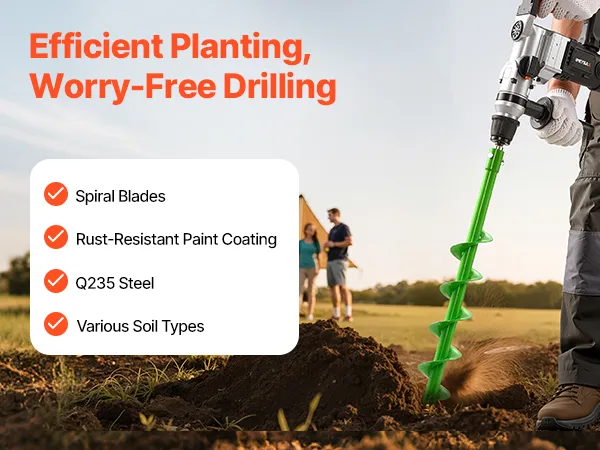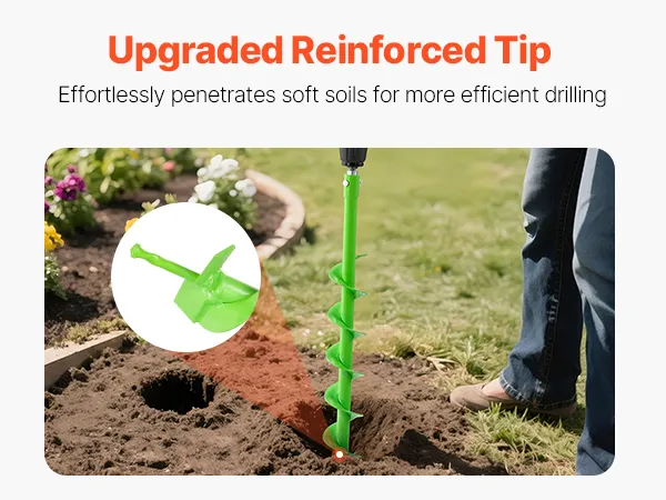 Q: What type of drill is compatible with this auger bit?A: Most garden auger bits will fit into any 3/8" hex drive drill or 20mm ID drive drill, making them compatible with standard cordless or fuel drills. Make sure your drill bit has enough torque for efficient digging.Q: What soil types can this auger drill bit handle?A: This auger works well in loose to moderately compacted soil, including garden beds, clay, and sandy soil. However, for very rocky or hard-packed soil, a more powerful drill and extra effort may be needed.Q: What else can I use this auger drill bit for besides planting?A: In addition to digging holes for bulbs, flowers, and vegetables, you can also drill holes for small fence posts, tents, or outdoor decorations.