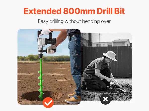 • Versatile Size: Measuring 80 mm (3.15 in) in diameter and 790mm (31.1 in) in length, drill augers for digging holes are ideal for planting bulbs and flowers of various sizes to suit your diverse gardening needs.