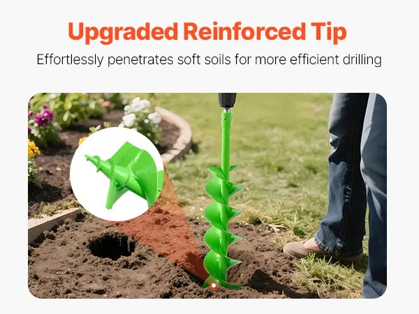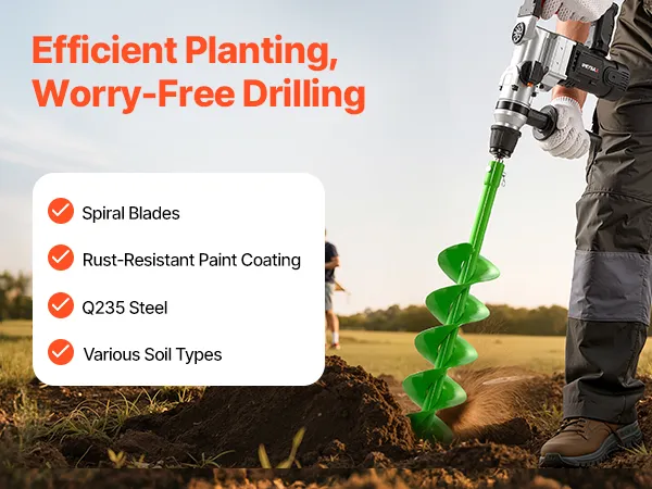 Q: What type of drill is compatible with this auger bit?A: Most garden auger bits will fit into any 3/8" hex drive drill or 20mm ID drive drill, making them compatible with standard cordless or fuel drills. Make sure your drill bit has enough torque for efficient digging.Q: What soil types can this auger drill bit handle?A: This auger works well in loose to moderately compacted soil, including garden beds, clay, and sandy soil. However, for very rocky or hard-packed soil, a more powerful drill and extra effort may be needed.Q: What else can I use this auger drill bit for besides planting?A: In addition to digging holes for bulbs, flowers, and vegetables, you can also drill holes for small fence posts, tents, or outdoor decorations.