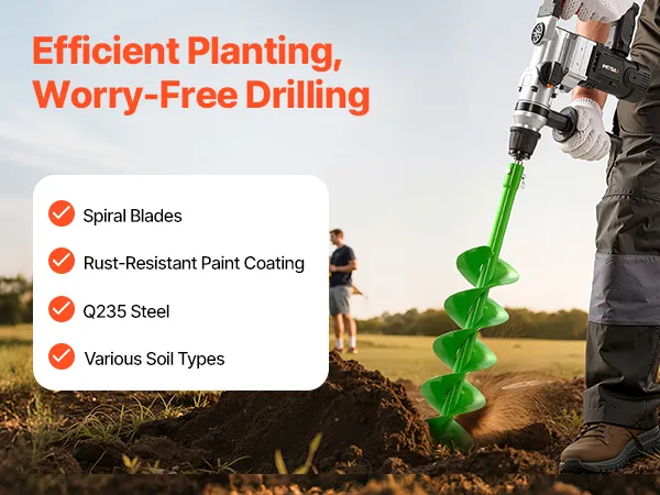 Q: What type of drill is compatible with this auger bit?A: Most garden auger bits will fit into any 3/8" hex drive drill or 20mm ID drive drill, making them compatible with standard cordless or fuel drills. Make sure your drill bit has enough torque for efficient digging.Q: What soil types can this auger drill bit handle?A: This auger works well in loose to moderately compacted soil, including garden beds, clay, and sandy soil. However, for very rocky or hard-packed soil, a more powerful drill and extra effort may be needed.Q: What else can I use this auger drill bit for besides planting?A: In addition to digging holes for bulbs, flowers, and vegetables, you can also drill holes for small fence posts, tents, or outdoor decorations.