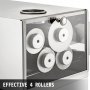 The outer casing, all the inlet and outlet adopt food-grade 304 stainless steel, the interior rollers are full solid stainless steel, stable and durable.