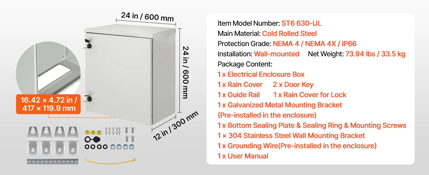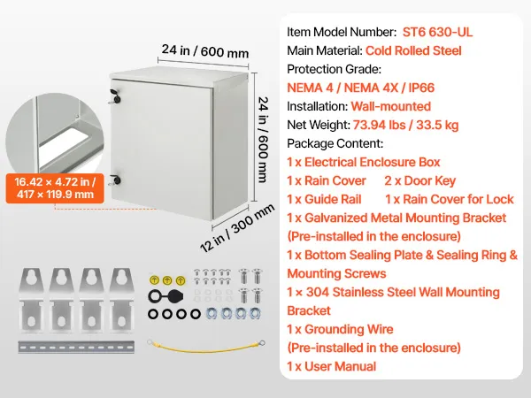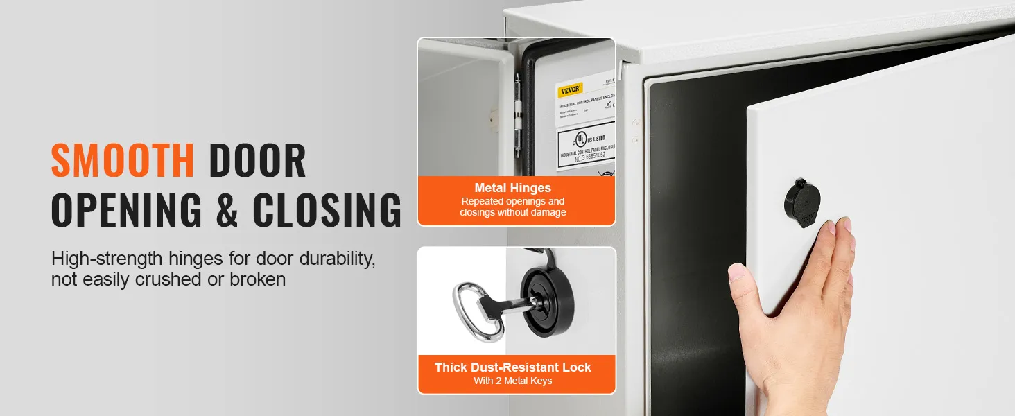 The VEVOR electrical enclosure is made of cold-rolled carbon steel. This makes it very strong and durable, capable of withstanding heavy impacts and harsh conditions. We also powder-coat the steel for added protection. This coating prevents rust and corrosion, ensuring long-lasting performance. The sturdy construction provides peace of mind knowing your equipment is well protected.