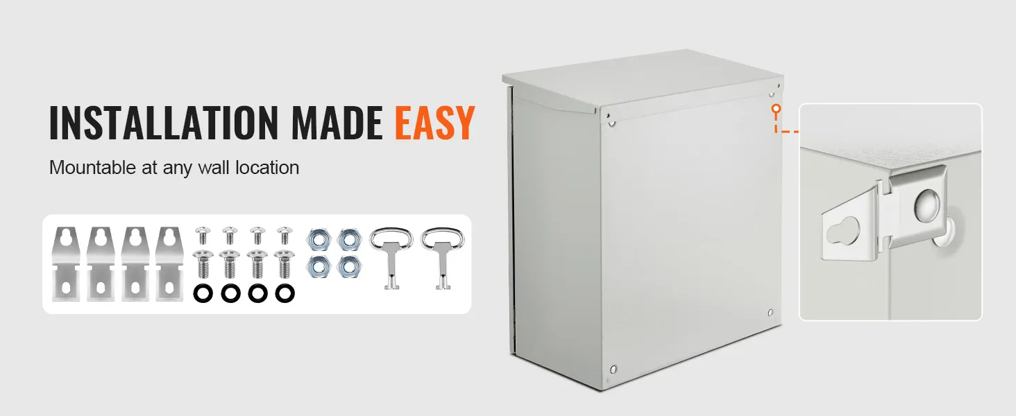 The VEVOR electrical enclosure offers multiple mounting options. Therefore, it is suitable for various projects. It has a removable door and panels. This feature allows you to easily access the inside. The electrical enclosure is ideal for housing EV chargers, solar arrays, etc. It provides flexibility. You can customize it for your specific needs with ease. How do you install or remove components without any hassle? This versatile box meets various requirements, making maintenance effortless. The flexible design ensures you adapt it precisely to fit your installation needs.