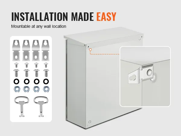 Each electrical enclosure box comes with two metal keys, safeguarding your electrical system. 304 stainless steel mounting bracket enables a stable, rust-resistant installation.