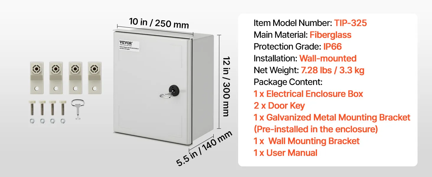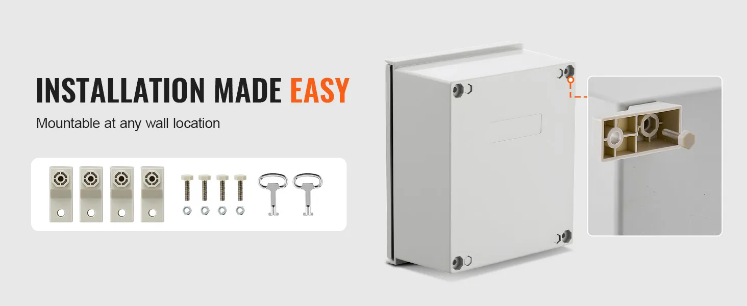 Each electrical enclosure box comes with two metal keys, safeguarding your electrical system. Complete mounting bracket enables a stable, rust-resistant installation.