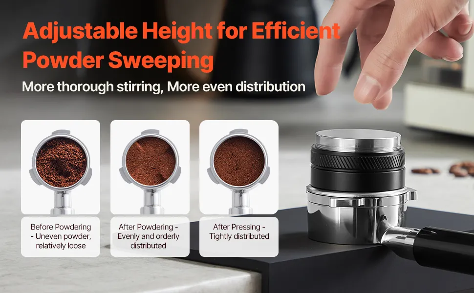 Easy to Clean and Maintain: This coffee distributor features removable design which allows for thorough cleaning and maintenance, ensuring long-term use and optimal performance for high-quality coffee extraction.