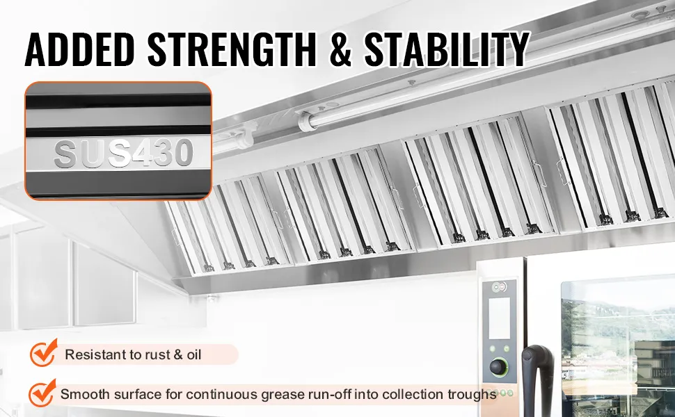 Thickened Stainless Steel: Crafted from 430 stainless steel, this hood filter is designed to withstand rust and oil, ensuring a long service life. The 3-point welding makes it resistant to breakage, while the well-polished edges provide a smooth finish that won't hurt your hands during installation and maintenance.