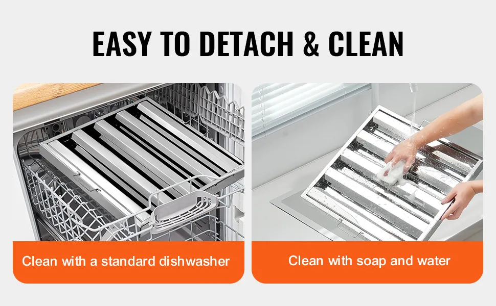 Effortless Cleaning: Cleaning your kitchen hood filter has never been easier. Simply wash it with soap and water or toss it in a standard dishwasher for hassle-free maintenance, keeping your kitchen condition clean and safe.