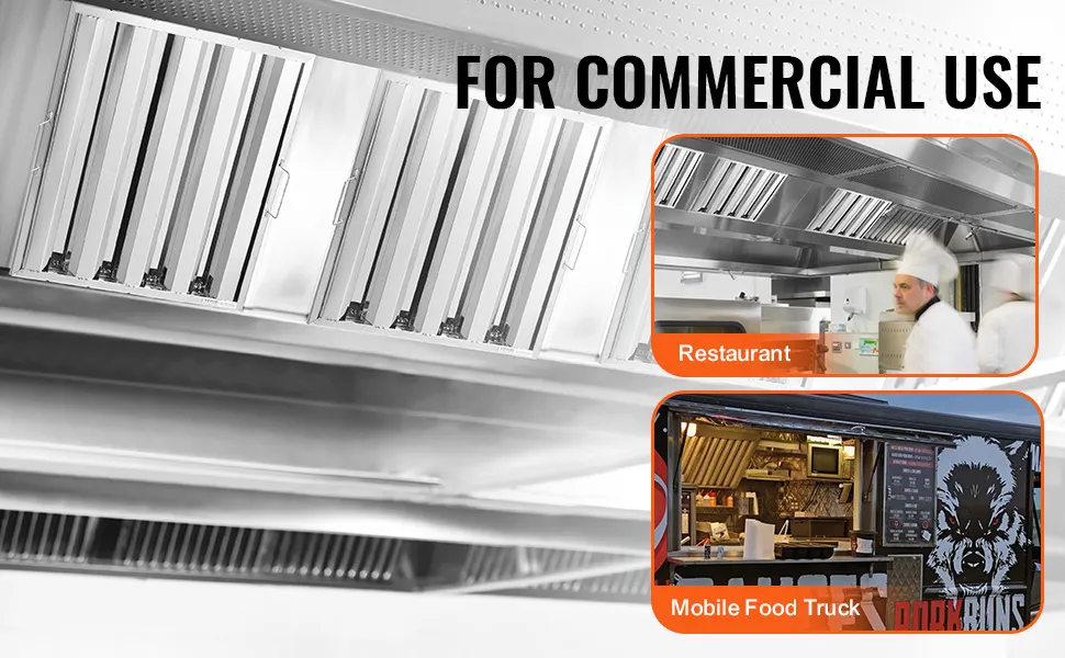 Efficient Grease Capture: Designed with 4 grease-repellent grooves and 10 oil outlets, this baffle grease filter efficiently handles high air volumes without blocking airflow. It is ideal for restaurants, mobile food trucks, and other commercial kitchens.