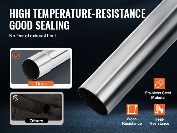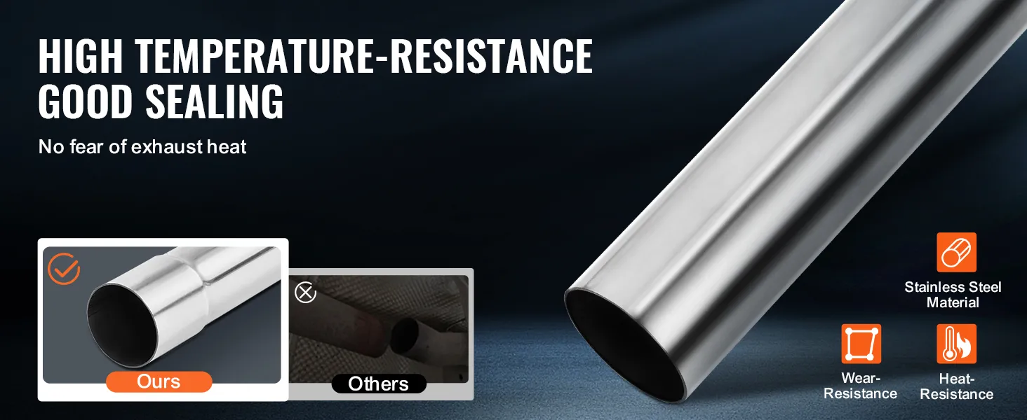 Stainless Steel Construction: Made from high-quality stainless steel, this exhaust kit offers superior hardness and strength. It is highly corrosion-resistant and effectively withstands high-temperature exhaust gases, ensuring long-lasting durability and avoiding oxidation.