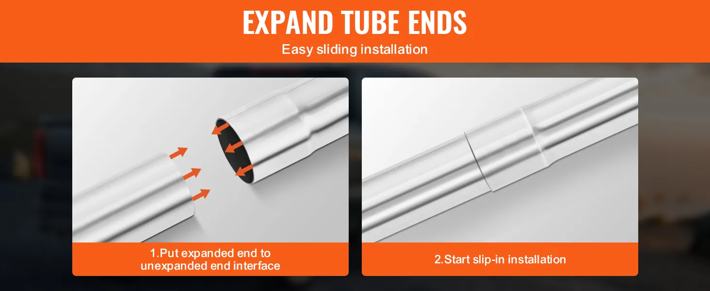 The exhaust kit features slip-fit joints with expanded ends on each pipe. This design makes installation quick and secure with excellent stability while you are using, offering a stable use experience.