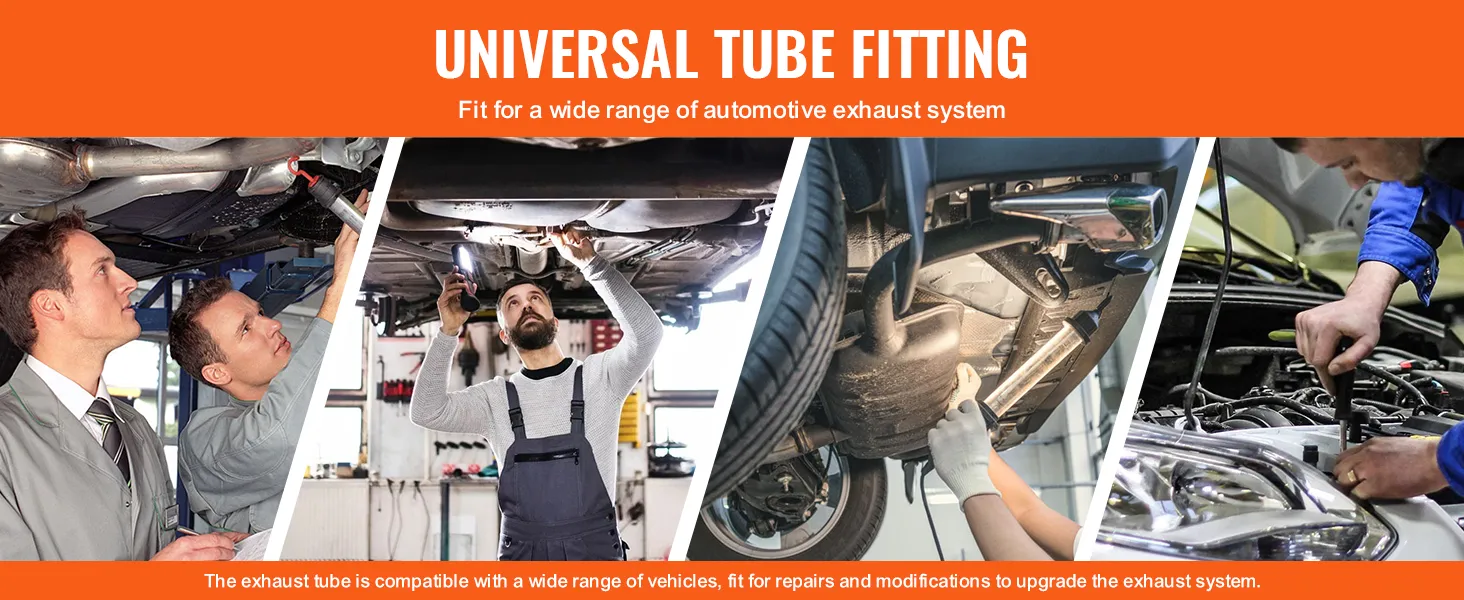 Compatible with a variety of vehicles, this exhaust kit is mainly used for repairing or upgrading automotive exhaust systems. This exhaust pipe fit for Garage, Auto Repair Store and 4S Store. Try this kit for better life.