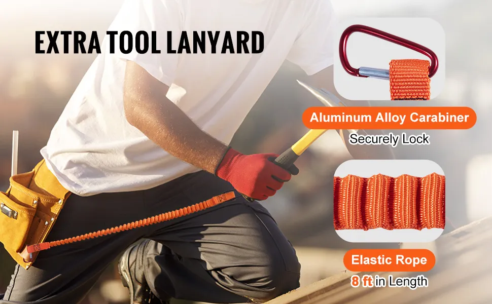 Extra Tool Lanyard: Safeguard your tools with the included tool lanyard. This practical addition ensures easy access to your tools while working. By securely attaching them to your wrist or harness, the lanyard reduces the risk of accidental drops, enhancing safety on the job.