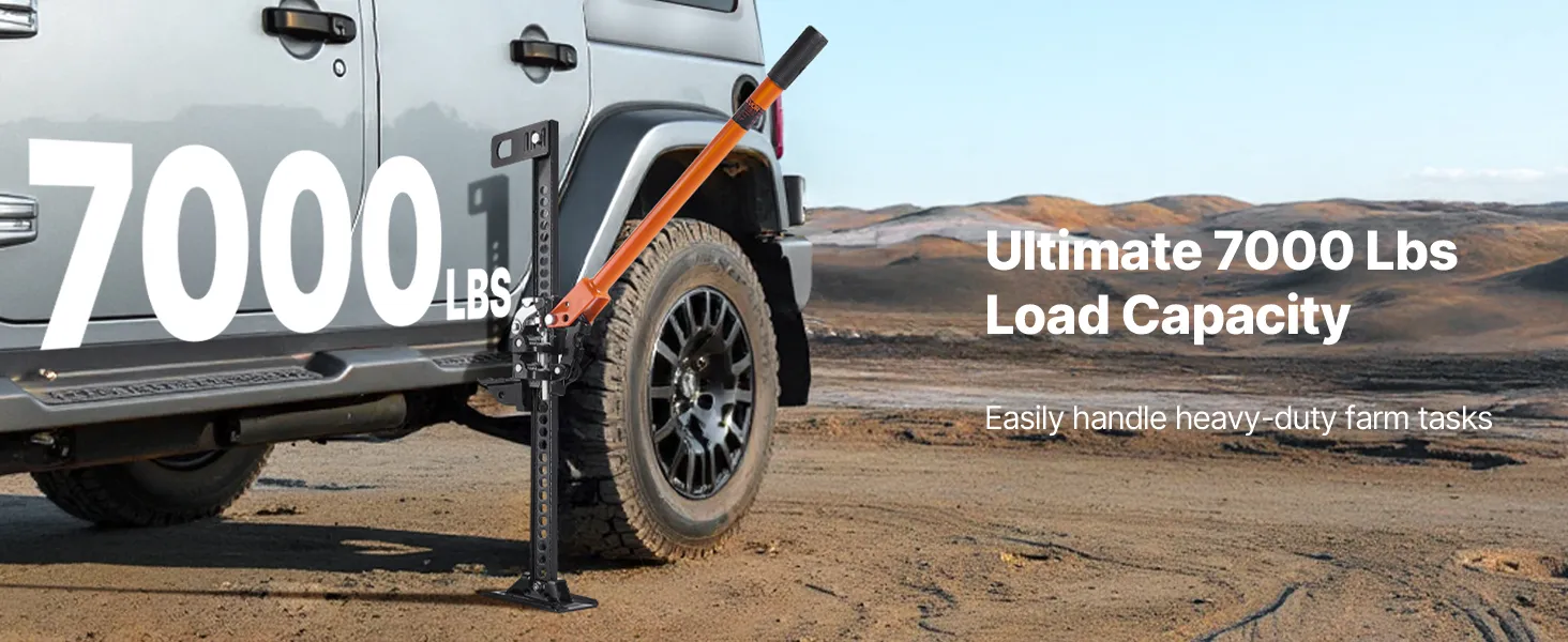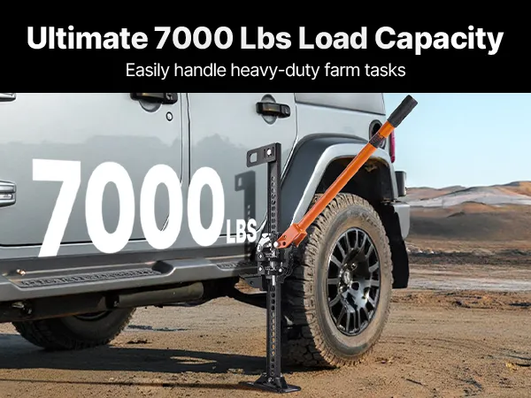 High Load Capacity: The heavy-duty farm jack has a maximum load capacity of 7,000 lbs / 3.18 Ton, easily handling lifting tasks for heavy vehicles or large objects. It's suitable for lifting, pulling, clamping, winching, and spreading