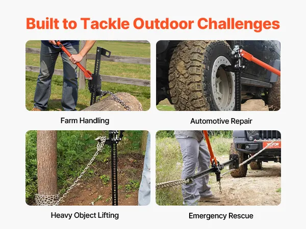 The farm jack is not only essential for a farm, but also suitable for truck repairs, warehouse handling, RV camping, and more, providing a one-stop solution for heavy equipment lifting needs.