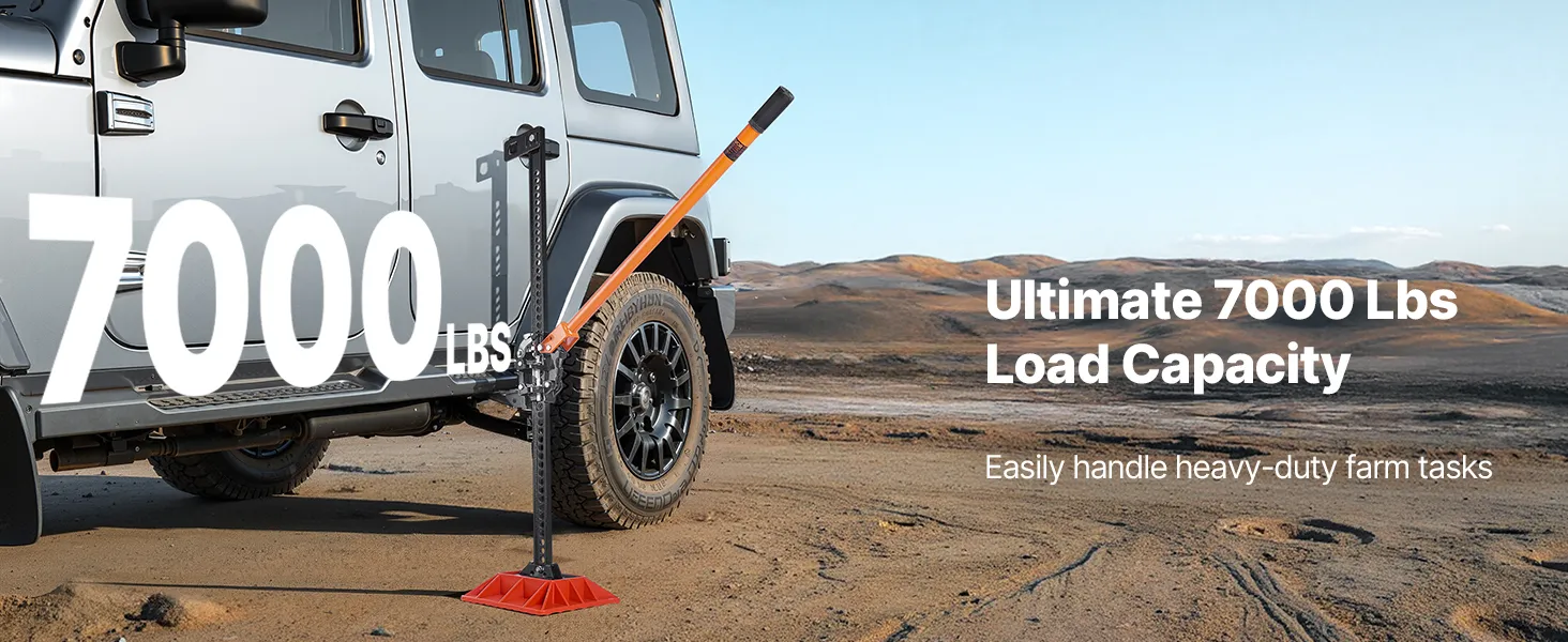 High Load Capacity: The heavy-duty farm jack has a maximum load capacity of 7,000 lbs / 3.18 Ton, easily handling lifting tasks for heavy vehicles or large objects. It's suitable for lifting, pulling, clamping, winching, and spreading