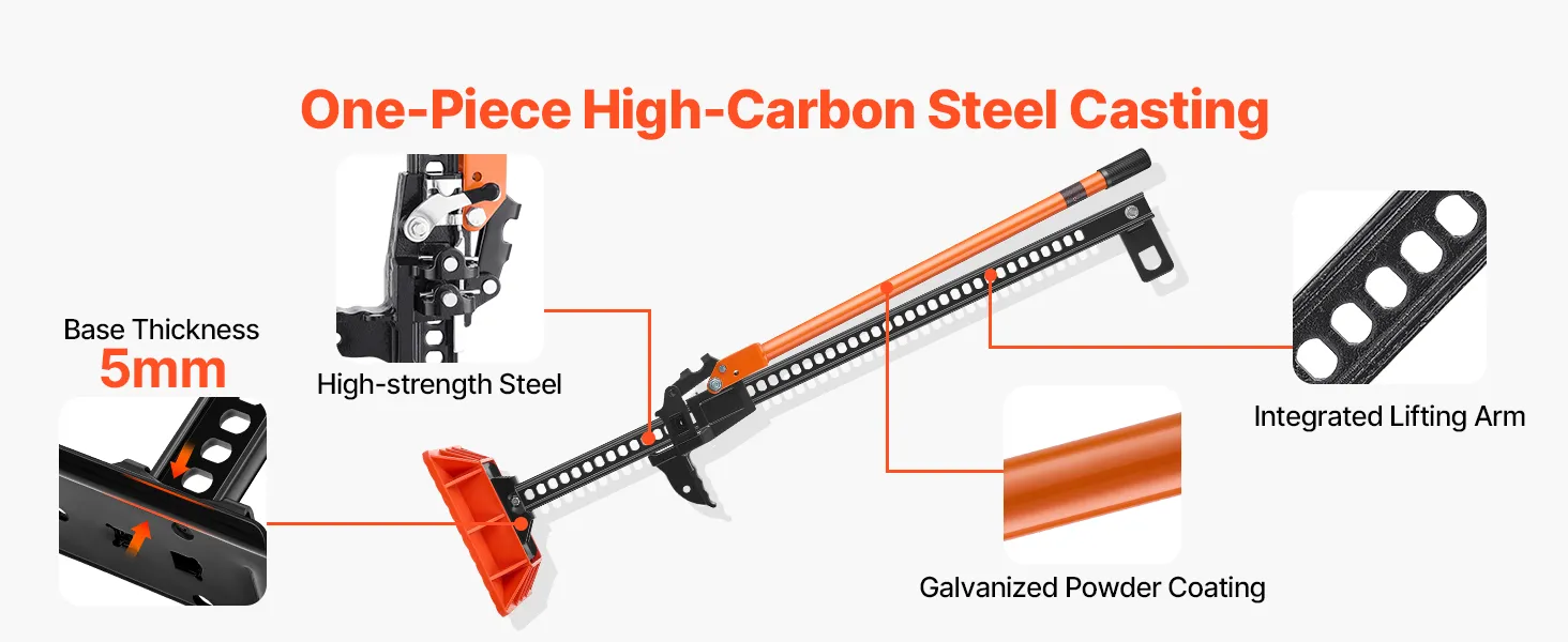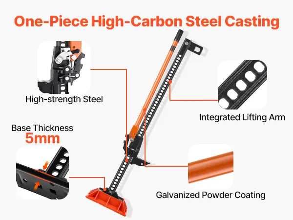 Durable and Sturdy Structure: Made from high-quality structural steel, our high lift farm jack has passed 50,000 lifting tests without deformation. The galvanized anti-rust coating ensures resistance to off-road and rough environments