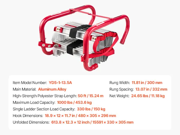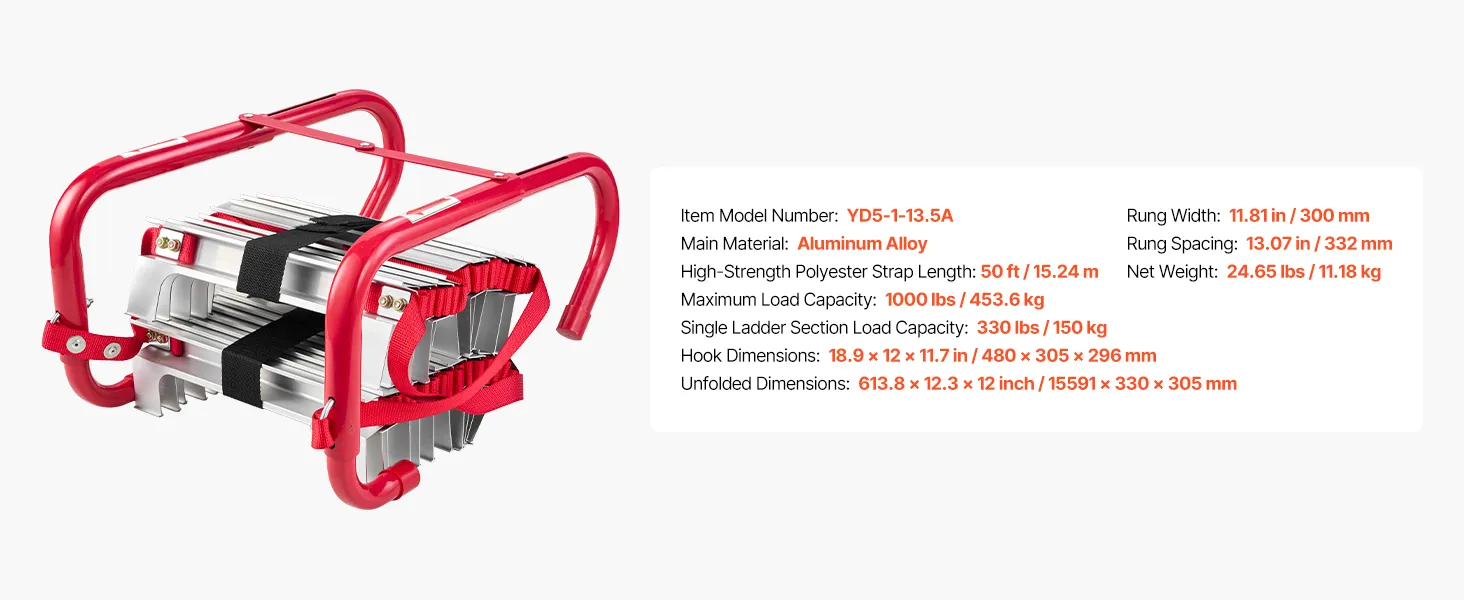 VEVOR Fire Escape Ladder, 5-6 Story 50FT Retractable Emergency Fire Ladder, Lightweight Aluminum Alloy Safety Escape Tool with Sturdy Polyester Strap, Anti-Slip & Wide Rungs, 1000LBS Max Loading VEVOR Fire Escape Ladder, 5-6 Story 50FT Retractable Emergency Fire Ladder, Lightweight Aluminum Alloy Safety Escape Tool with Sturdy Polyester Strap, Anti-Slip & Wide Rungs, 1000LBS Max Loading