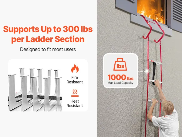 This safety fire escape ladder has a maximum load capacity of 1000 lbs, with each ladder section supporting up to 330 lbs. Suitable for most users, it allows multiple family members to use it simultaneously for a quick and safe escape.