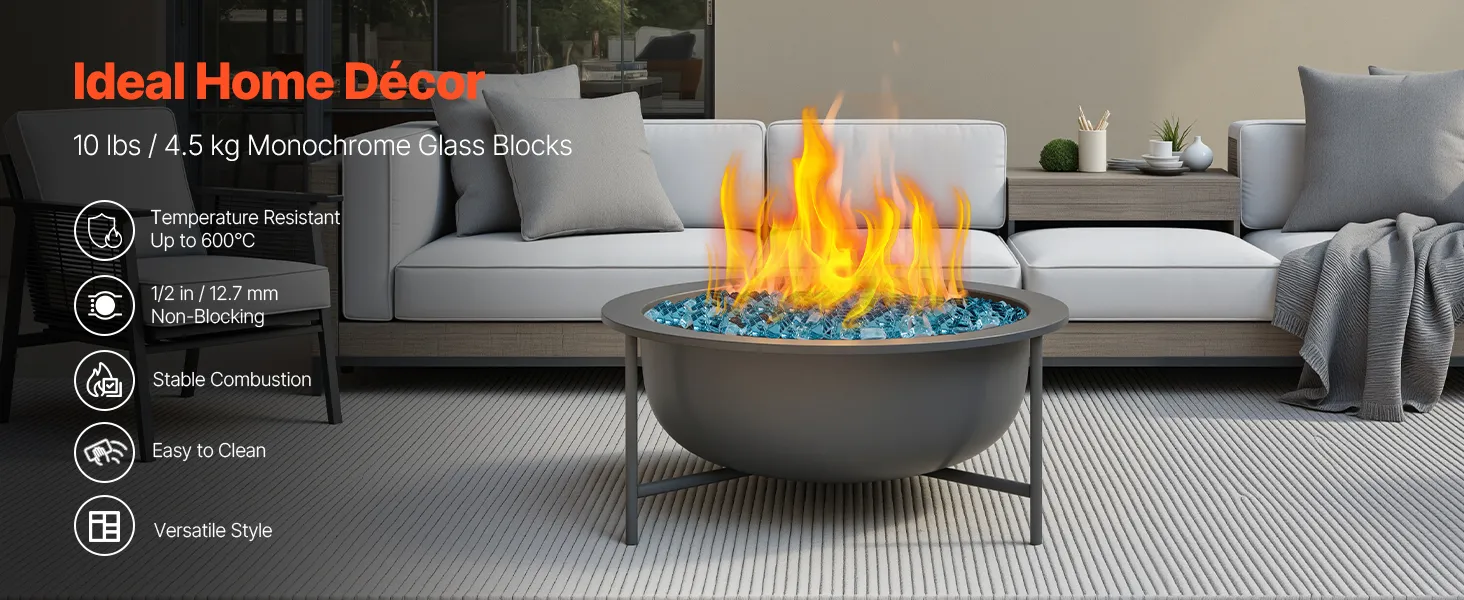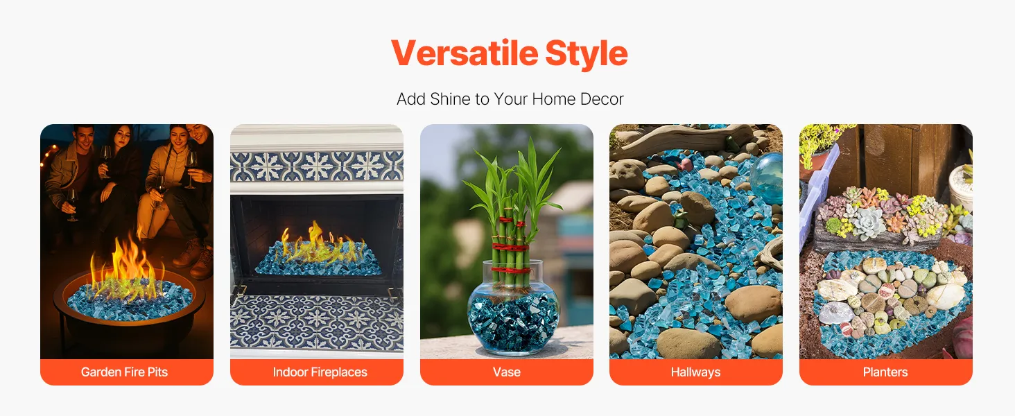 Made from premium fire glass, our bright, colorful decorative pieces are durable and can handle heat. They won't melt, or produce smoke or ash. Just a quick wipe brings back their shine. Ideal for fire pits, fireplaces, and gardens, they effortlessly add a touch of sparkle to your home.