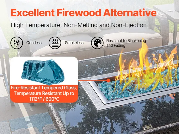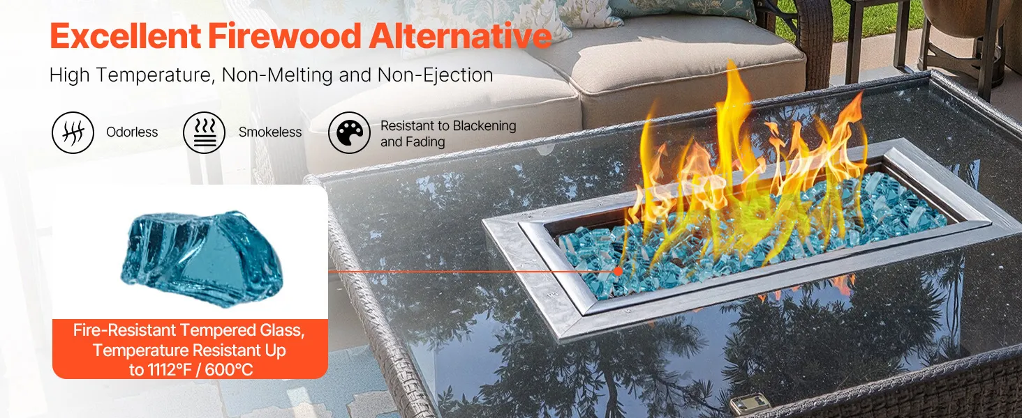 High-Temperature Tempered Fire Glass: Crafted from quartz sand using special techniques, this fire glass is stronger and more impact-resistant than regular glass. It can handle high temperatures without melting or darkening. No smoke, no smell, and no ashes left behind—just a clean, beautiful fire feature