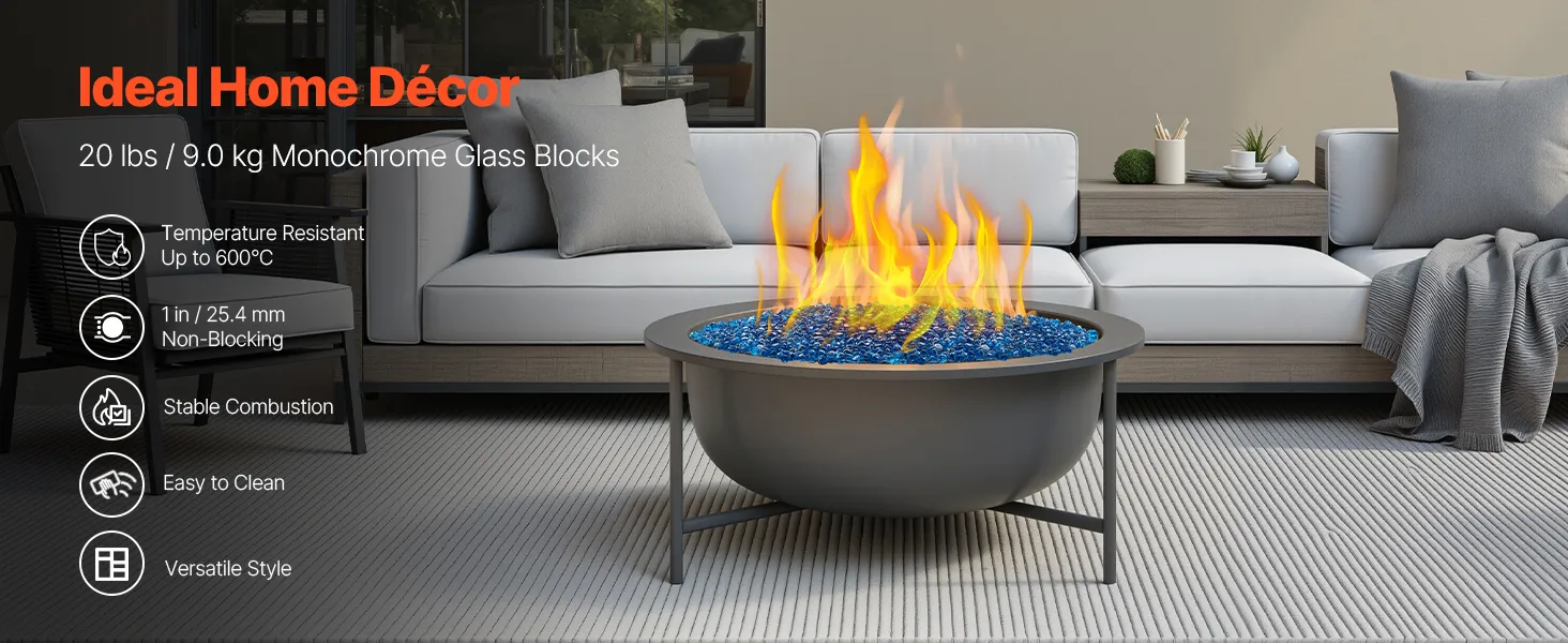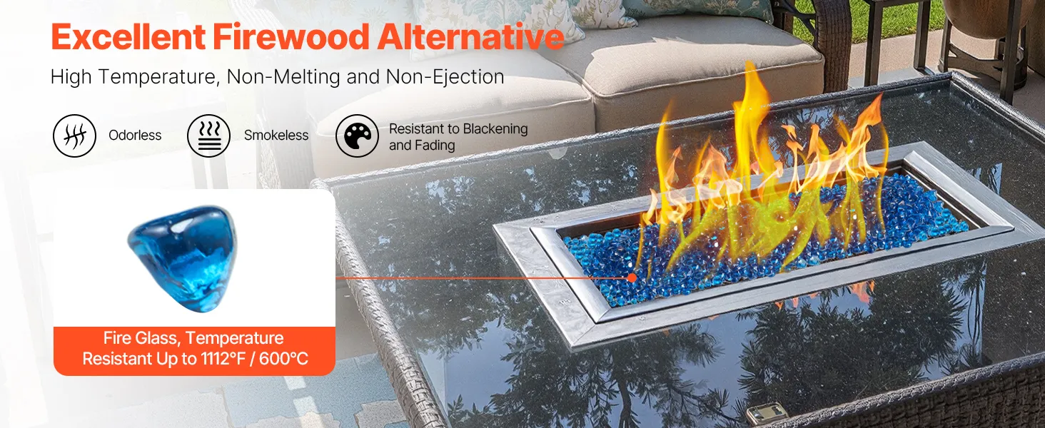 High-Temperature Fire Glass: Made from quartz sand through special processing, this fire glass is built to withstand high temperatures. It doesn’t crack or darken even under intense heat. Plus, there’s no smell or smoke while using, and it leaves no ash behind